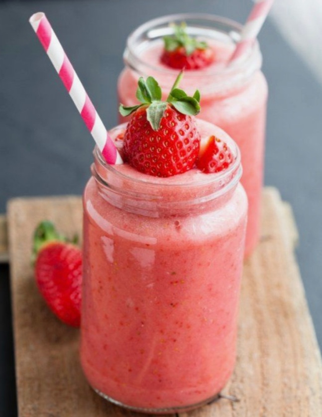 Frullato a base di latte: 100 ml di latte, una pesca, una pera, due albicocche, il succo di un’arancia, un bicchierino di apricot brandy. Frullate e servite.